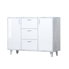 Комод Эго К-2, (на ножках) Бетон светлый/Белый глянец